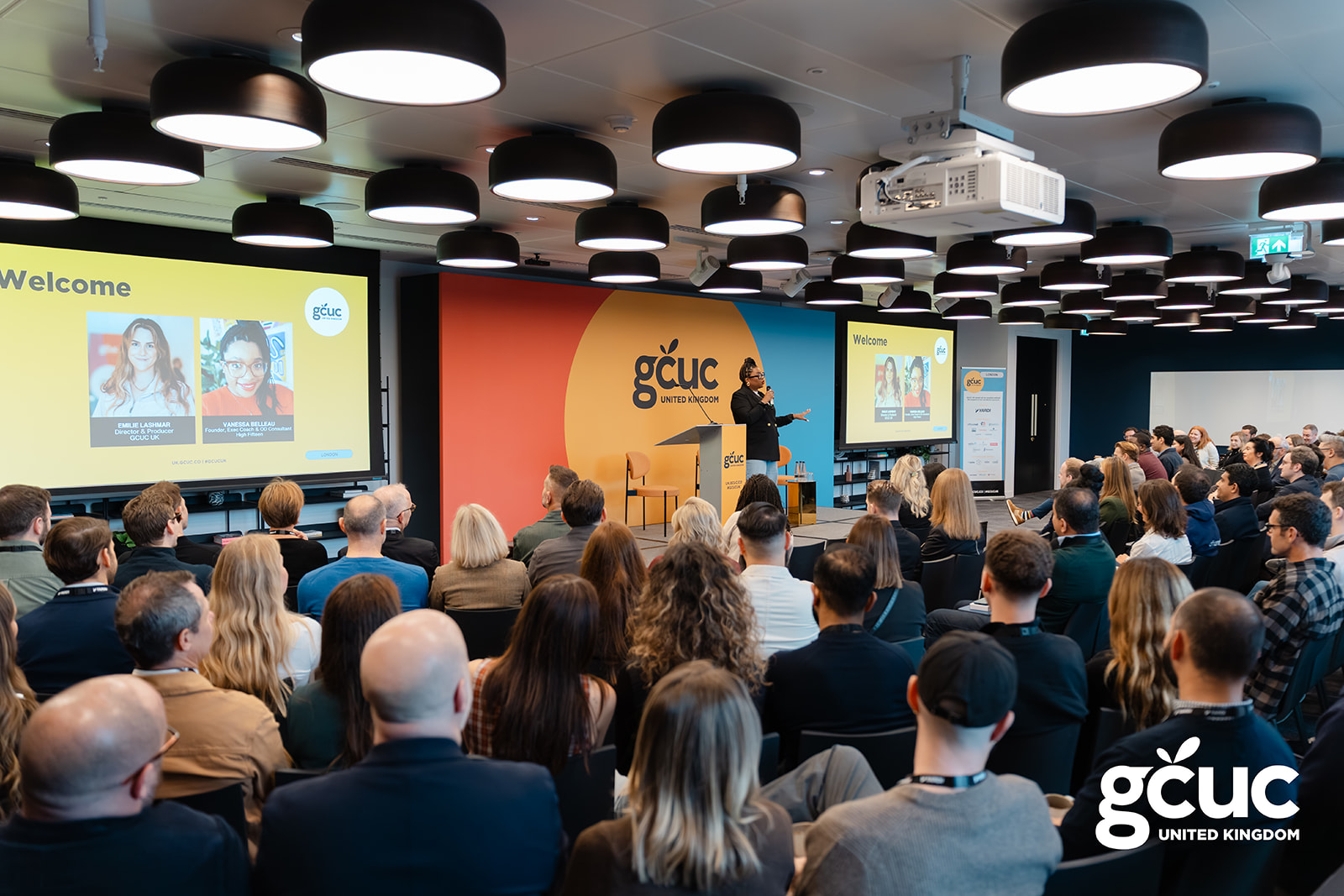 Emilie Lashmar (GCUC UK Director & Producer) and Vanessa Belleau (High Fifteen) set the tone from the opening moments, bringing an energy that was part choreography, part emotional intelligence, and entirely electric. As one attendee later described it: “Vanessa was the brightest light in every room.”
